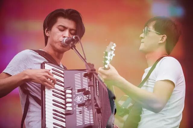 时间回到2010年北京的麻雀瓦舍,彼时的“五条人”乐队还只有两条人,阿茂留着小平头,仁科戴着一顶色彩鲜艳的针织帽,两人的舞台表现显得稍微拘束,尤其是阿茂串场念白时,估计台下的观众听得也是云里雾里,不明所以。大抵也是这个缘故,在唱最后一首歌《一些风景》的时候,阿茂不无尴尬地说:“放心,你们都听得懂的,是普通话。”然而拨动琴弦或者按响琴键的一瞬,“五条人”乐队做音乐的专注、海丰人颇有些蛮愣的洒脱率真和他们看似剑走偏锋的音乐直觉也都于此初见端倪。