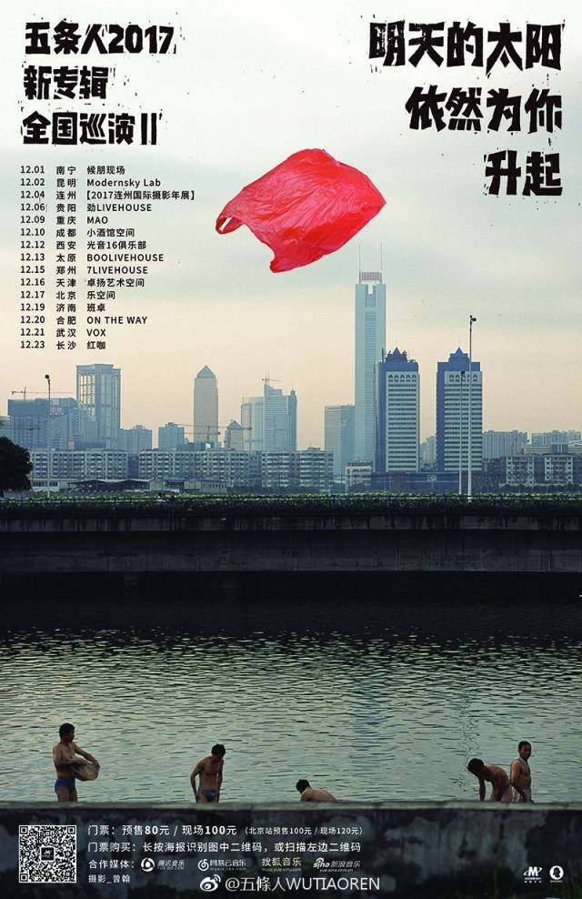 五條人擅长将这种艺术感融入一切有乐队有关的东西而不仅仅是音乐,这是乐队即将开始的全国巡演贰海报,仁科在采访中告诉我这张海报设计用了老乡曾翰的一副摄影作品——《超真实中国》系列其中一副。