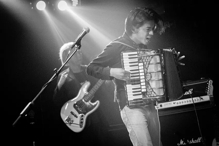 牛河:嗯,也不是说自由。以仁科阿茂他们两位对音乐的想法就是,如果乐队所有的solo都是以他们两为主,那么一整场下来,听上去好像就没什么区别了嘛。但像我们这样的编排会感觉很有戏剧性,舞台的效果非常好,大家在舞台上也会各有表现,各有分工。