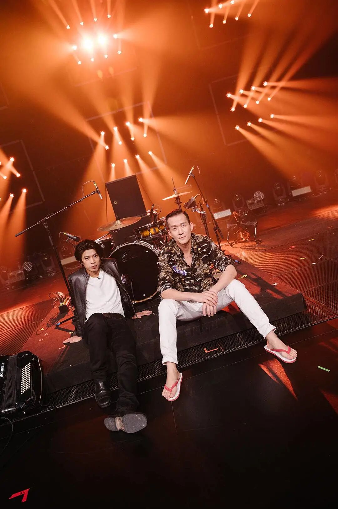 五条人乐队:主唱、主音吉他、手风琴/ 仁科(左),主唱、节奏吉他/ 阿茂(右)