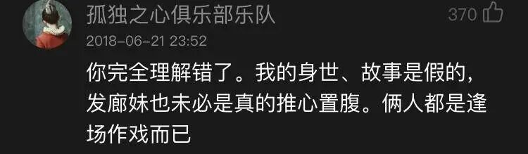 仁科:有看过一些,但是都忘了。不过其中有一个给我留下的印象很深刻,他当时那个评论说了一句话,让我觉得他这个人很酷。他的意思是说,《梦幻丽莎发廊》那首歌里的发廊小姐和顾客之间,其实都在撒谎,只是在随便聊聊。我就觉得他get到了那个点。不过我忘了原话怎样,你去看一下,他写的更精彩。