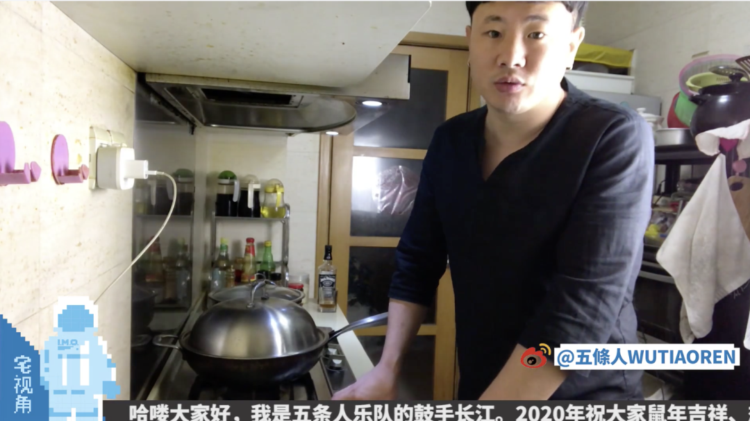 疫情期间,来自河北邯郸的五条人鼓手苗长江在线展示酸汤五花肉的做法。图片:B站“摩登天空modernsky”