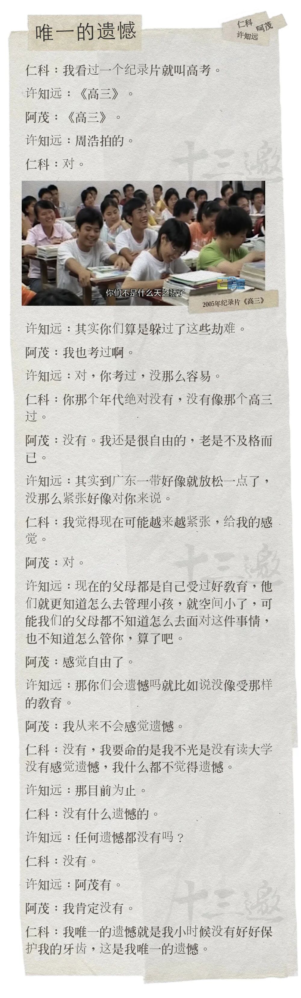 十三从摄制组的纸堆里翻出这份场记,它记录了去年11月,在小洲村、石牌村的另一些瞬间,一些正片之外的、神经更跳跃的对话。
