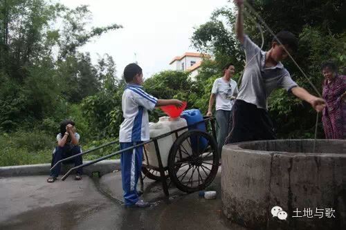 几只大塑料桶,够一家人吃上两三天,晚来的人们看看井底的一汪水,带着空桶返家了。暮色沉沉,据说明天一早井水又会溢满。